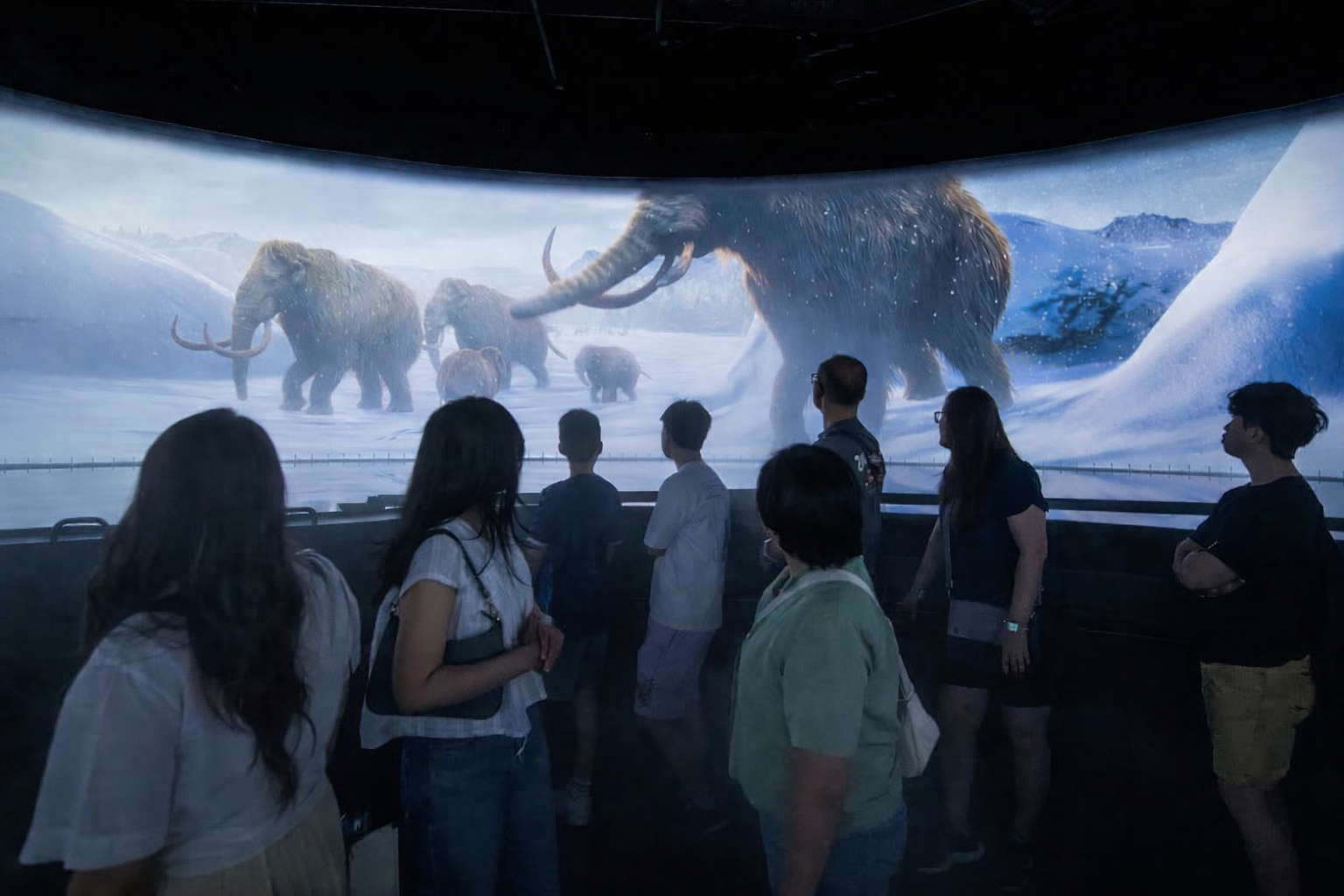 The 360° multimedia show spans 500 million years of life on Earth. Visitors are lifted off to see major historical eras and two mass extinction events that dramatically shaped the evolution of life on our planet.
